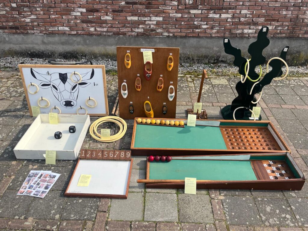 Brabantse spellekes Maak je bezoek compleet met een gezellige activiteit. De Brabantse spelletjes zijn geschikt voor familiereünies, bedrijfsfeesten en groepen. Combineer een rondleiding met spel en gezelligheid. Duur ongeveer 1 tot 1,5 uur Consumptie Inclusief 1 consumptie Prijs €7,50 Spelformulieren Scoreformulier & uitleg Wat je kunt spelen 1 Vier op een rij 2 gaffel gooien 3 barak 4 cijferspel 5 cactus 6 vang de stier 7 kegelen 8 raad het plaatje 9 dobbelstenen 10 klompenspel
